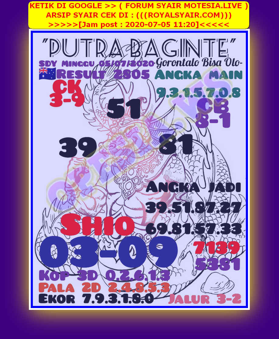 Syair Sydney Minggu 5 Juli 2020 Royal Syair